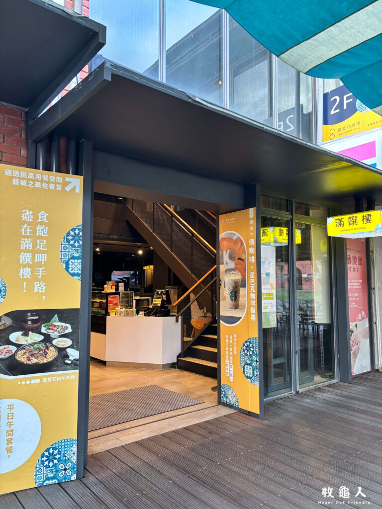 因為我們有住宿傳藝,所以晚餐選擇園區的「滿饌樓」,位於食光走廊二樓,主打「新台流」料理與台菜佳餚,是寵物友善餐廳唷!餐廳空間較大且無隔間,也有一區飲料半自助吧,所以建議使用推車或提籃會比較方便,店員也會協助安排較角落的位置。