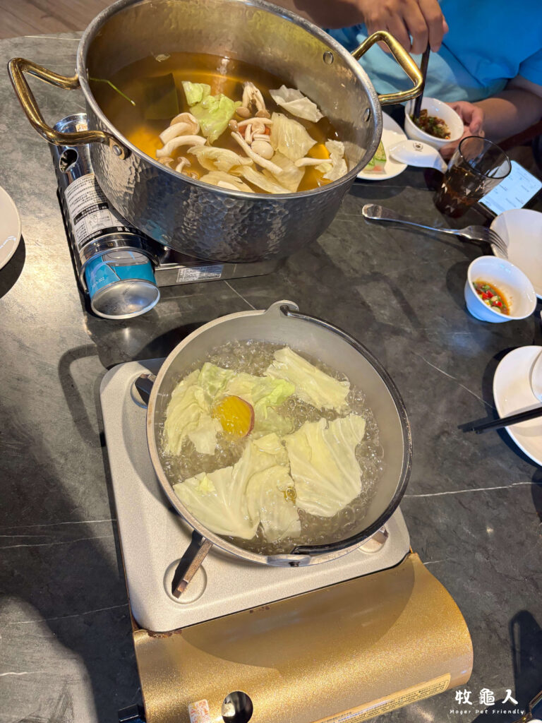 我們當日點選台味鍋物,採個人肉品套餐式點餐,火鍋料及蔬菜可線上點吃到飽,一鍋湯底共同享用,湯底數量因口味及人數而異。因為阿墨平常習慣晚餐要搭配鮮食,感謝店家協助提供清水鍋,讓我們能清燙一些蔬菜肉片給阿墨,補充一下餐具是我們自備的唷,以避免造成店家困擾(>﹏<)