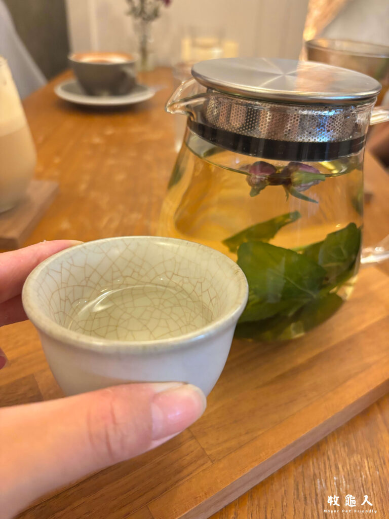 我最喜歡的其實是「花草茶」,跟大部分店家不一樣,不是用茶包而是直接用新鮮花草原料下去沖泡,放久一點越喝越甘甜,並帶著淡淡的植物清香,搭配甜點也是很好的選擇~重點是除了很大一壺外,熱得還可以再回沖一次,為避免風味減半,記得要留一半或三分之一再給店家唷~