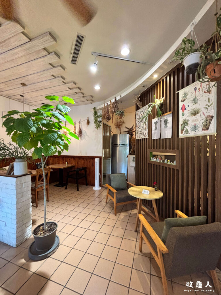 店內座位安排保有適當距離,有適合獨自放鬆的窗邊座位、能輕聲交談的小桌區,也有舒適療癒的沙發區,並以「植物生活感」為核心,空間裡錯落擺放著各式觀葉植物,從牆面垂掛的綠植、桌邊的小型盆栽,到角落吸睛的鹿角蕨與大型植栽,都讓整個環境像一座微型室內花園(●ˇ∀ˇ●)